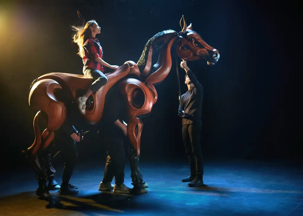 I was drawn to Nick’s work because of the emotional life he brings to puppetry—it’s never just technical. From the beginning, I was clear that the horse had to feel real, not symbolic. We worked closely to shape its design and movement language so that it could breathe, listen, and respond. It was a true collaboration, grounded in a shared commitment to bringing the horse fully to life.